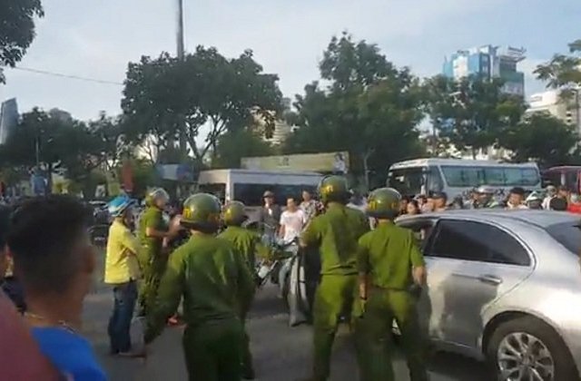 Rất đông cảnh sát trật tự phải đuổi theo chiếc Mercedes do một phụ nữ lái lạng lách trên phố ở Đà Nẵng.
