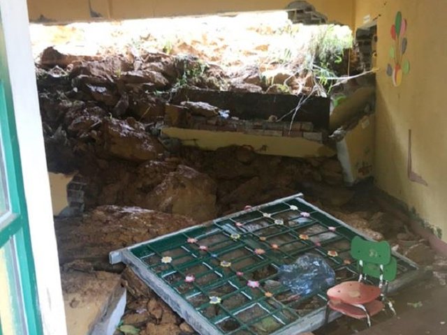 Mưa lớn, sạt lở đất khiến nhiều trường học tại huyện Bảo Thắng (Lào Cai) bị nứt tường, có trường mầm non bị sập hoàn toàn một bức tường của lớp học.
