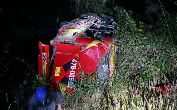 Không làm chủ được tốc độ, xe container bất ngờ lao xuống vực khiến tài xế tử vong tại chỗ, phụ xe ngồi bên cạnh kịp nhảy ra ngoài thoát chết.
