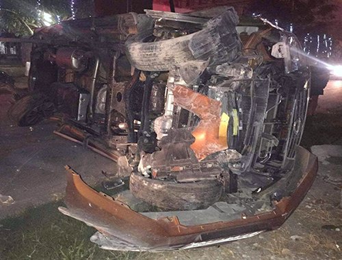 5 người gặp nạn trên chiếc ôtô bán tải lật ngửa