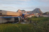 Tàu hoả đâm xe tải chở đá, ít nhất 10 người thương vong