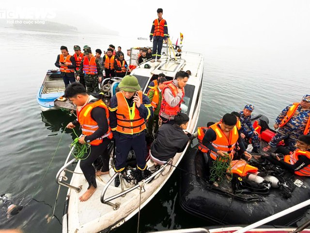 Hàng chục tàu, xuồng cùng hơn 500 người được huy động tìm kiếm các nạn nhân mất tích trong vụ chìm tàu khách trên hồ Thác Bà, đoạn qua xã Bảo Ái, tỉnh Lào Cai.