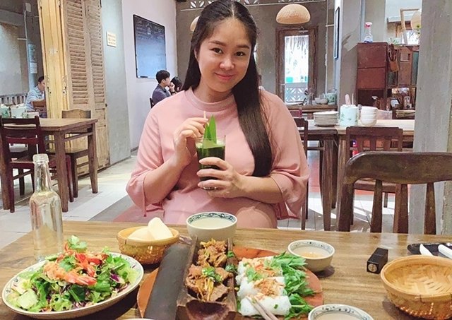 Diễn viên Lê Phương không sợ xấu vì tăng cân khi mang thai mà cố gắng ăn đủ chất cho mẹ khỏe, con khỏe.