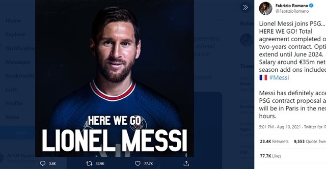 Lionel Messi và Paris Saint-Germain hoàn tất thương thảo hợp đồng.
