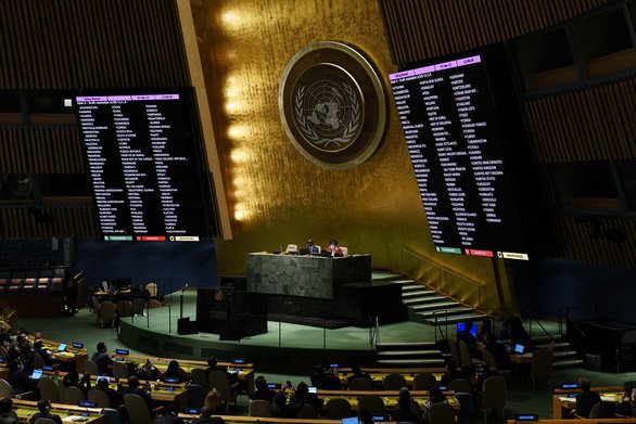 Nghị quyết kêu gọi đình chỉ tư cách thành viên của Nga tại Hội đồng Nhân quyền Liên Hợp Quốc (LHQ) nhận được 93 phiếu thuận, 24 phiếu chống và 58 phiếu trắng.