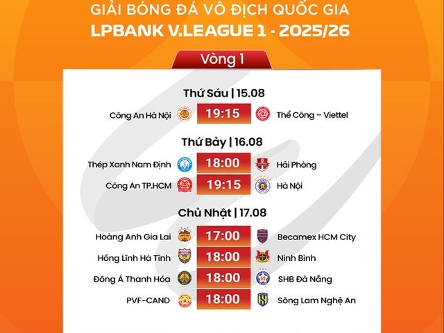 Lịch thi đấu, kênh xem trực tiếp V.League 2025-2026 vòng 1