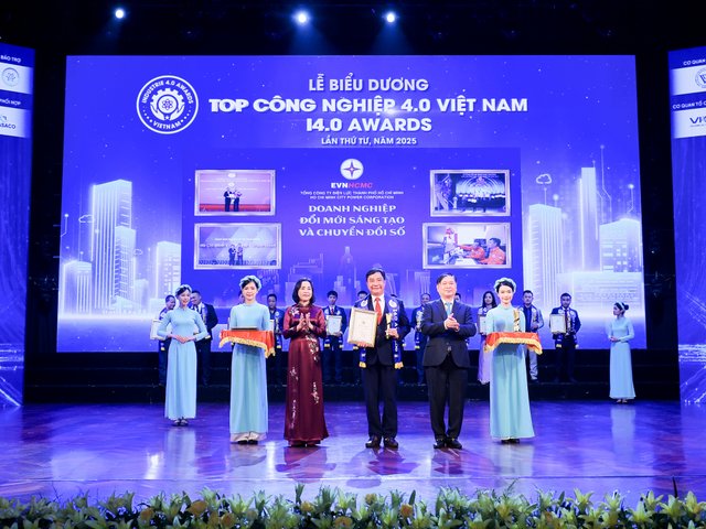 Tổng công ty Điện lực TP. Hồ Chí Minh (EVNHCMC) vinh dự được trao giải thưởng Top Công nghiệp 4.0 Việt Nam lần thứ 4 - năm 2025, tại Lễ biểu dương vừa diễn ra vào tối ngày 22/06 tại Hà Nội do Liên hiệp các Hội Khoa học và Kỹ thuật Việt Nam tổ chức.
