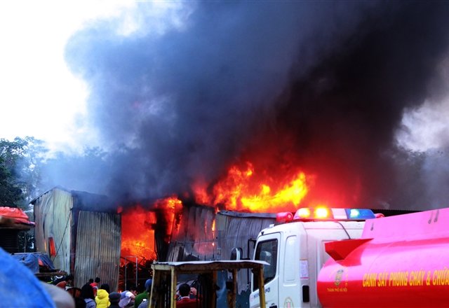 Cháy lớn tại nhà kho khu chợ ở Linh Đàm, Hà Nội