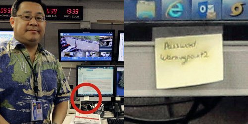 Bức ảnh một nhân viên cơ quan quản lý tình trạng khẩn cấp của Hawaii chụp tại văn phòng cho thấy rõ mẩu giấy ghi chú mật khẩu truy cập.