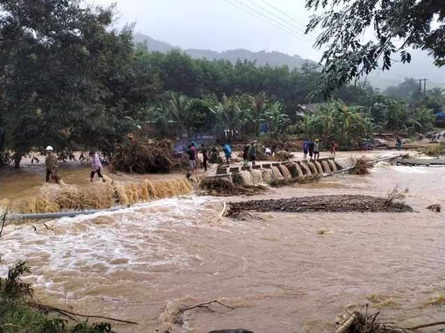 Ngớt mưa, chúng tôi lập tức đến huyện Trà My (Quảng Nam), bởi nơi ấy vừa xảy ra thảm hoạ, sạt núi làm chết, mất tích 12 người. Lũ bắt đầu rút từ đêm qua, nhưng vẫn còn mấp mé hai bên quốc lộ. Mới chỉ quá TP.Đà Nẵng chừng 10 cây số, giao thông đã tắc hoàn toàn.