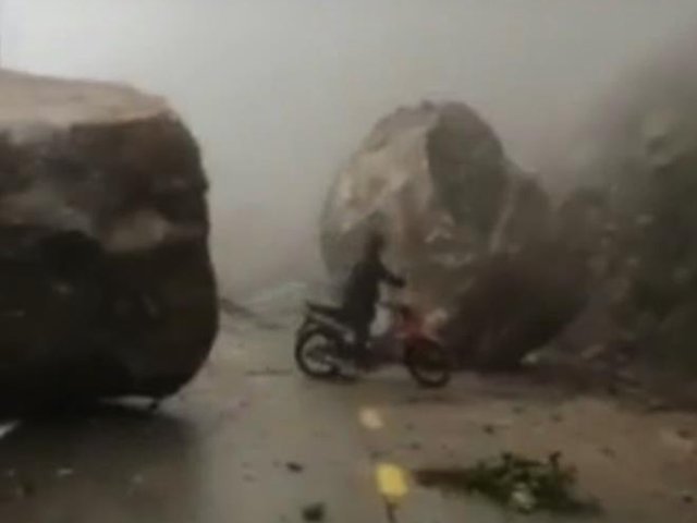 Mưa bão làm nhiều tuyến đường sạt lở, đáng sợ nhất là những tảng đá khổng lồ ầm ầm trên núi lăn xuống.