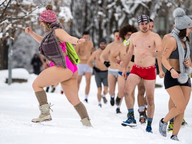 Lột bỏ quần áo, mặc đồ lót thi chạy giữa giá lạnh 0 độ