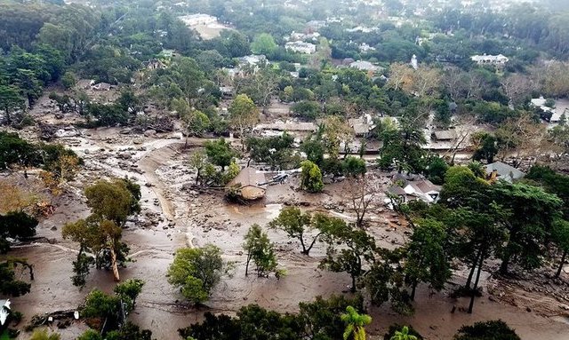 Trận lũ bùn ở miền nam California, Mỹ, hôm 9/1, khiến khung cảnh nơi này giờ đây tan hoang như chiến trường thời Thế chiến I.