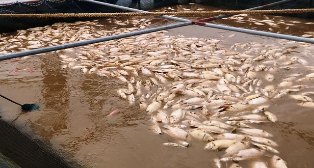 Lũ đầu nguồn mang theo bùn đổ về hạ lưu sông Hồng khiến 80 tấn cá lồng bè bị chết trắng mặt sông, gây thiệt hại nhiều tỷ đồng