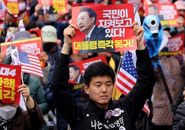 Khắp trung tâm Seoul, đặc biệt ở khu vực quanh tòa án, cả những người ủng hộ và phản đối luận tội Tổng thống Yoon Suk-yeol đang tụ tập suốt ngày đêm để chờ đợi.
