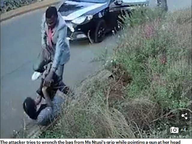 Dù bị bọn cướp dùng vũ lực trấn áp và dí súng vào đầu nhưng cô Noxolo Ntusi, 26 tuổi, ở Nam Phi quyết không buông túi xách. Với Ntusi, túi xách rất quan trọng vì trong đó có bài luận văn tốt nghiệp thạc sĩ.