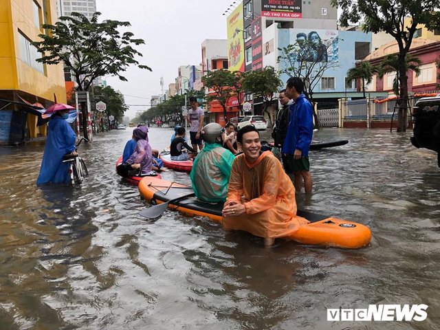 Người Đà Nẵng chèo thuyền trên phố sau trận mưa ngập lịch sử