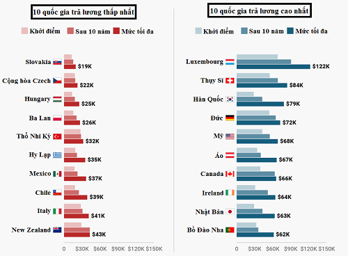 Luxembourg vẫn giữ vững vị trí là nơi trả lương giáo viên cao nhất, cả về mức khởi điểm, theo thâm niên và theo giới tính.