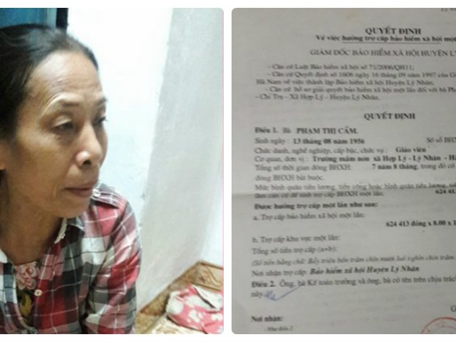 Sau 35 năm công tác, khi nghỉ hưu cô Phạm Thị Cầm chỉ được nhận hơn 7 triệu đồng tiền trợ cấp 1 lần từ bảo hiểm xã hội mà không nhận được bất cứ đồng lương hưu nào.
