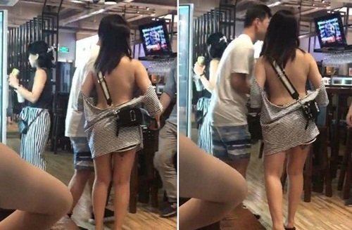 Gái trẻ TQ khiến cả cửa hàng trà sữa sốc vì mặc như không
