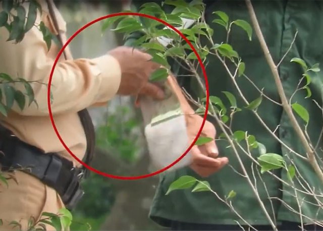 Khi những chiếc xe tải dừng lại, tài xế mang theo tờ giấy hoặc quyển sổ nhỏ kẹp một vật nghi là tiền đưa cho các cán bộ CSGT đang làm nhiệm vụ ở Thái Bình.