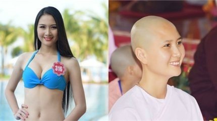 Nguyễn Thị Hà - thí sinh đạt giải "Người đẹp có mái tóc đẹp nhất" tại Hoa hậu Việt Nam 2014 - khiến nhiều người ngỡ ngàng khi trút bỏ mái tóc dài để quy y cửa Phật.