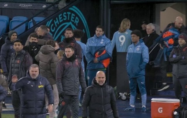 Haaland không thể giữ bình tĩnh trước những quyết định khó hiểu của tổ trọng tài trong trận hòa 2-2 của Man City trước Tottenham đêm 3/12.