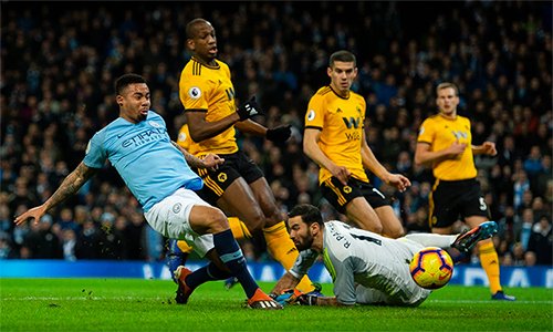 Gabriel Jesus lập cú đúp khi Man City hạ Wolves 3-0 hôm 14/1, trong trận đá muộn nhất vòng 22 Ngoại hạng Anh.