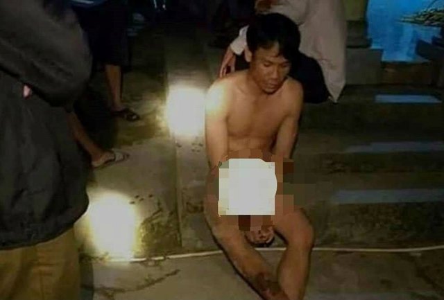 Sau nhiều ngày theo dõi, người dân đã khống chế, bắt giữ 'ma nhớt' mình trần như 'nhộng' bàn giao cho công an xử lý.