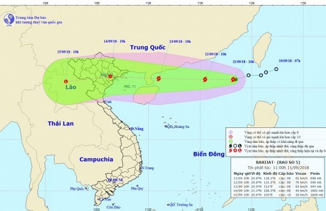 Sáng nay (11/9), áp thấp nhiệt đới đã mạnh lên thành cơn bão số 5, ngoài ra, bão MANGKHUT trên vùng biển Tây Bắc Thái Bình Dương đang tiếp tục mạnh lên, có thể đạt cấp siêu bão và di chuyển hướng về khu vực Bắc Biển Đông trong khoảng 4 ngày tới.