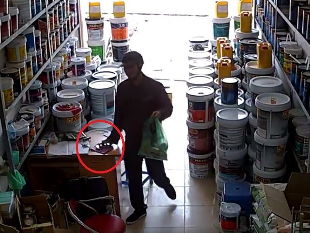 Lợi dụng lúc chủ cửa hàng mất cảnh giác, người đàn ông nhanh tay lấy trộm đi hai chiếc điện thoại đang đặt trên bàn rồi tẩu thoát.