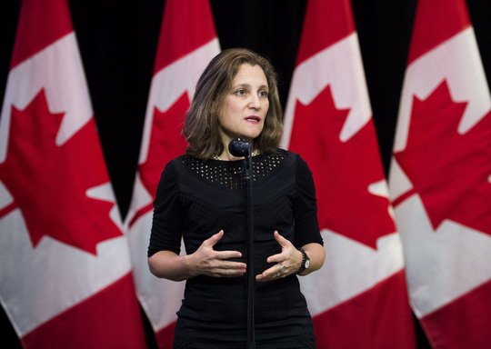 Bộ trưởng Ngoại giao Canada Chrystia Freeland hôm 12-12 khuyến cáo Mỹ không chính trị hóa các trường hợp dẫn độ, một ngày sau khi Tổng thống Mỹ Donald Trump tuyên bố ông có thể can thiệp vào vụ giám đốc tài chính Huawei.