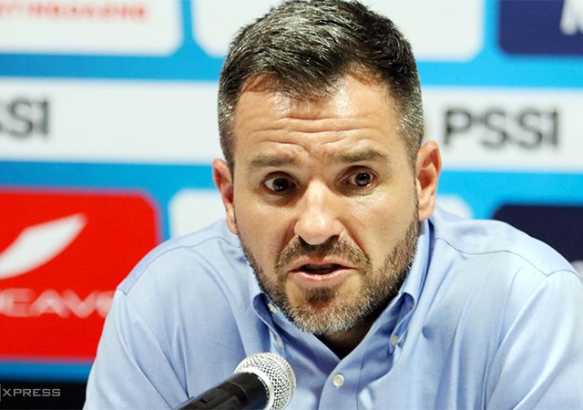 HLV Simon McMenemy trả lời truyền thông sau khi cùng các học trò thua Việt Nam 1-3 trên sân nhà Bali tối 15/10.