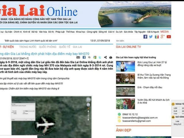 Thông tin tìm thấy máy bay MH370 trên báo Gia Lai là hoang tin