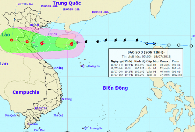 Theo Trung tâm Khí tượng Thuỷ văn Trung ương, bão số 3 Sơn Tinh đang dần tiến sát vào bờ biển gây mưa lớn kéo dài ở nhiều tỉnh miền Bắc và miền Trung.