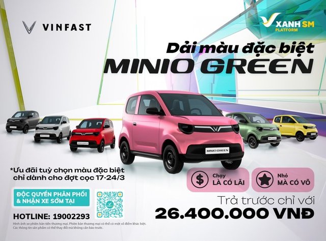 Được hưởng chính sách vay tới 90% trong 5 năm, đồng nghĩa với chi phí ban đầu tự có chỉ cần 26,4 triệu là có xe; đặc quyền trừ vào giá 5 triệu đồng và miễn phí chọn màu đặc biệt chỉ duy nhất trong thời gian mở cọc tiên phong qua GSM (17-24/3) - VinFast Minio Green đang trở thành “thỏi nam châm” trên thị trường ô tô Việt bởi những lợi thế độc nhất vô nhị cùng loạt chính sách siêu hời.