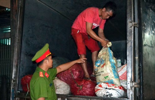 Kiểm tra ôtô tải chạy trên quốc lộ 13, lực lượng chức năng tỉnh Bình Phước phát hiện 2,3 tấn mỡ động vật bốc mùi hôi thối.