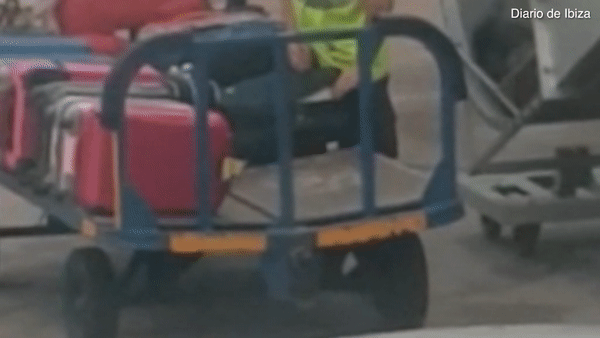 Đoạn video quay cận cảnh một nam nhân viên sân bay “ngang nhiên” móc trộm đồ của khách từ vali rồi đút vào túi.