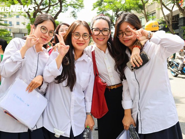 Các thí sinh tươi vui rạng rỡ rời phòng thi, ôm chầm lấy cha mẹ để ăn mừng sau khi hoàn thành tốt bài thi tốt nghiệp môn Ngữ văn.