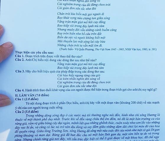 Đề thi Ngữ văn THPT Quốc gia 2019