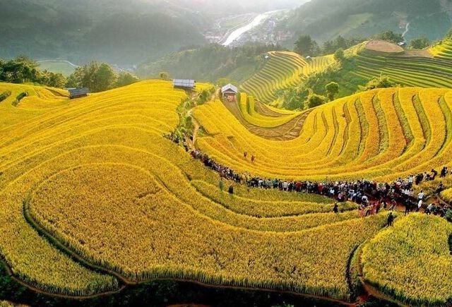 Những thửa ruộng bậc thang vàng óng ánh ở Mù Cang Chải đẹp tựa như một bức tranh là điểm dừng chân thú vị trong cung đường Tây Bắc.