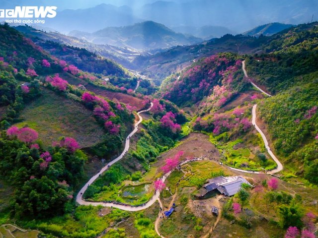 Mùa hoa tớ dày đang vào độ rực rỡ nhất, phủ sắc hồng lên núi rừng và các bản làng Mù Cang Chải, tạo nên khung cảnh bừng sáng giữa những ngày đông rét buốt.