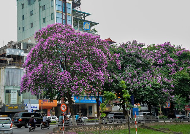 Vào những ngày tháng 5, trên một số tuyến phố Hà Nội, hoa bằng lăng nở tím dọc hai bên đường.