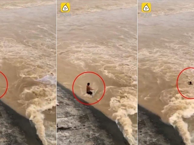 Lũ dữ trên sông ở Trung Quốc đã cuốn phăng một người đàn ông chỉ trong vòng 6 giây khi anh ta cố gắng kéo lưới cá.