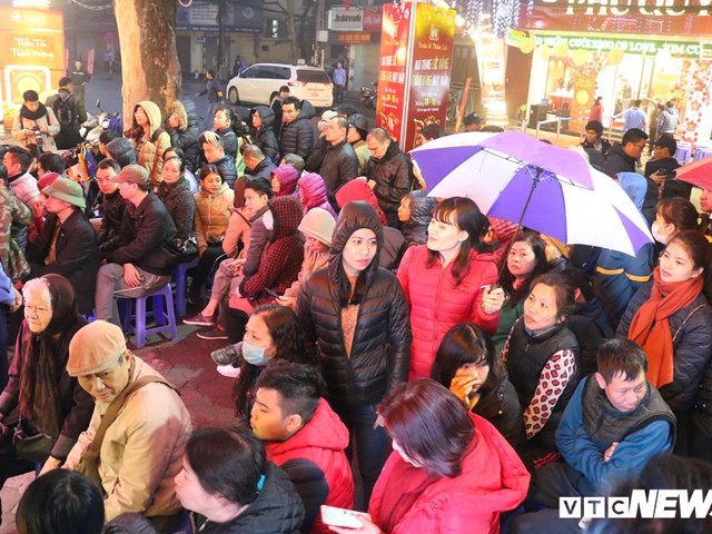 (VTC News) - Sáng 25/2 (mùng 10 tháng Giêng), nhiều người dân Thủ đô đội mưa xếp hàng, chen chúc nhau tại các cửa hàng vàng để vào mua vàng lấy may ngày vía Thần Tài.
