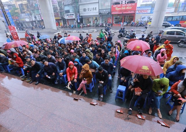Ảnh: Dân Thủ đô đội mưa xếp hàng từ sáng sớm mua vàng ngày vía Thần Tài