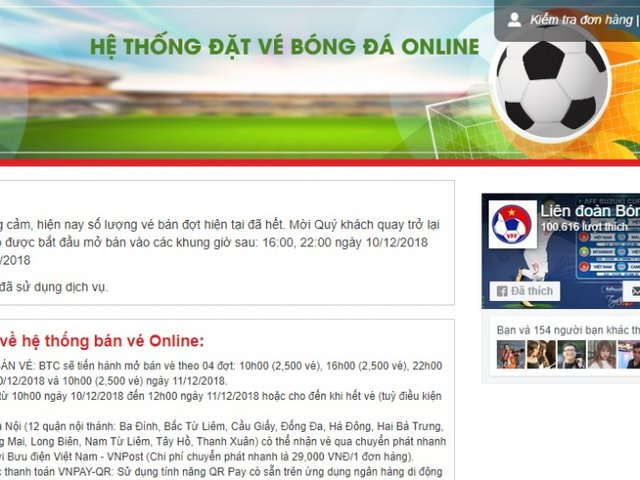 LĐBĐ Việt Nam VFF thông báo 2.500 vé đợt 1 được bán hết trong vòng 16 phút tính từ thời điểm cổng bán vé trực tuyến mở cửa.