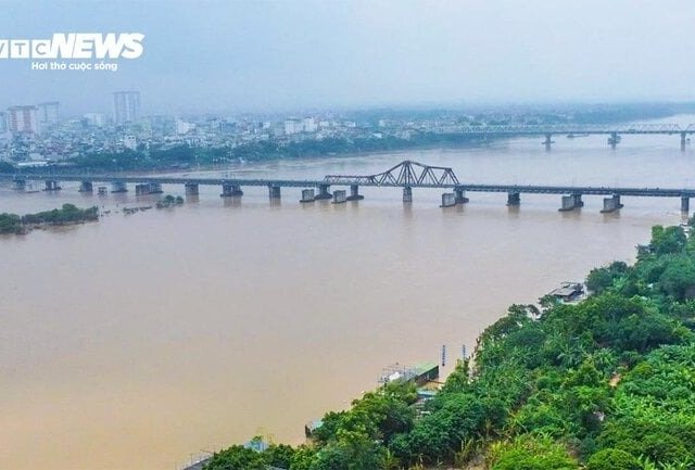 Nước sông Hồng ở Hà Nội vượt báo động 2, cách cầu Long Biên hơn 2m
