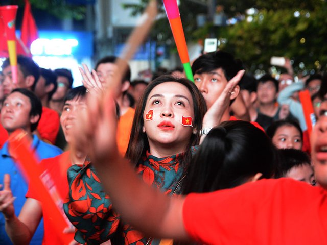 Hàng loạt "bóng hồng" xinh đẹp chăm chú theo dõi từng pha bóng và rạng rỡ xuống đường ăn mừng chiến thắng của đội tuyển Việt Nam.