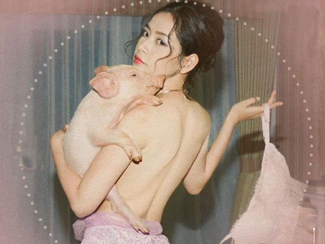 Cùng chụp ảnh với heo nhưng mỗi người đẹp lại có một ý tưởng, thần thái khác nhau. Trong khi Lý Nhã Kỳ đài các, quyến rũ thì Chi Pu và Ngân 98 lại sexy, nóng bỏng bên các chú heo con.
